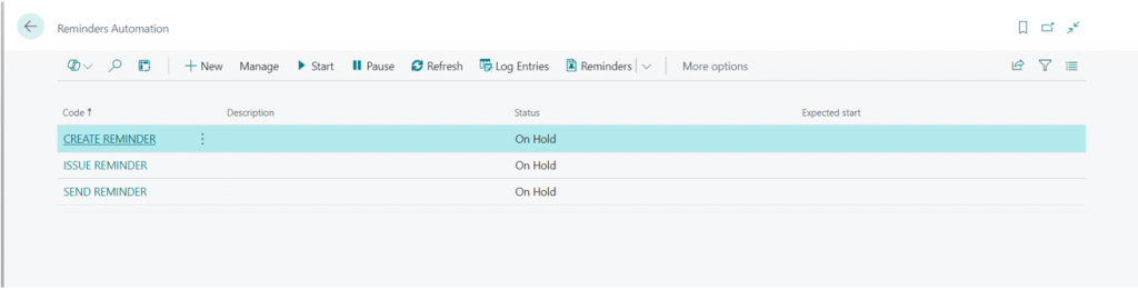 Business Central tracks each automation run via the “Log entries” action. To see a list of issued reminders.