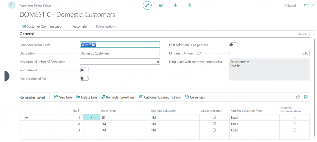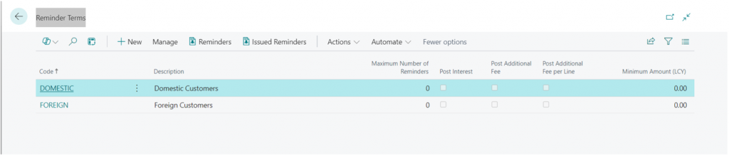 Issue – Define how the reminder entries are created in the customer ledger.